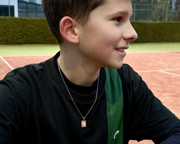 This tennis necklace in the shape of a tennis court is subtle and reflects your love for the sport.
